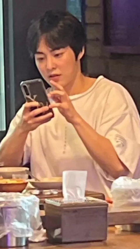 sendiri aja ni bang? mana ganteng banget lagi bareface gini π« foto terbaru temen op ketemu xiumin pas mau makan #xiumin #exo #exol