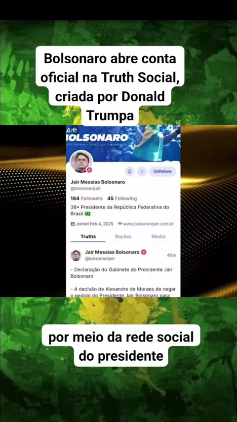 Bolsonaro abre conta oficial na Truth Social, criada por Donald Trumpa