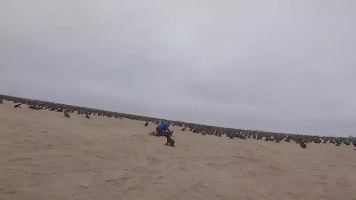 A seal pup rescued from a big hook, with another trying to defend him!#100sealsfortime#sealrescue#animalrescue#savingseals#bethechange#namibia