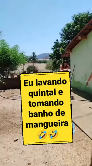 eu lavando o quintal de casa e tomando banho de mangueira. #conquista10k #Resistodevida