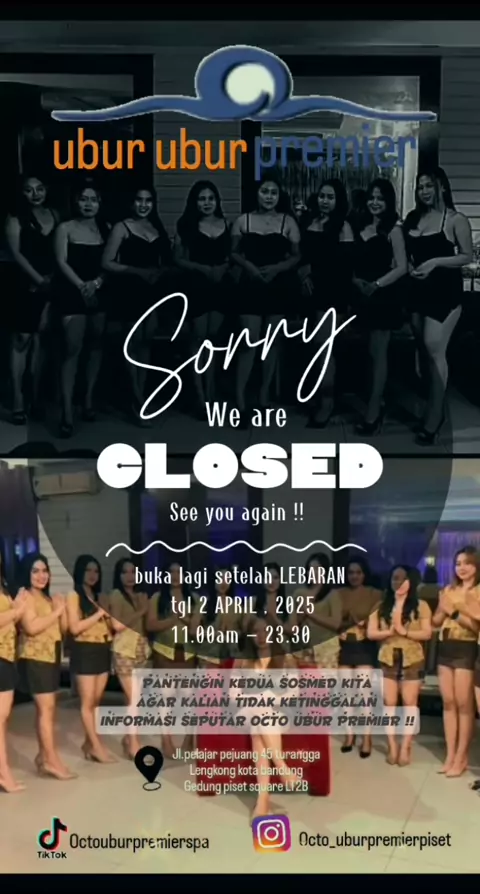 Hai ubur- ubur lovers , selama bulan puasa kita tutup ya Dan jangan khawatir kita buka kembali setelah lebaran tgl 2 april 2025 See youi !! Marhaban ya ramadhan Mohon maaf lahir dan batin ππ»#videoviral#spabandung#spa