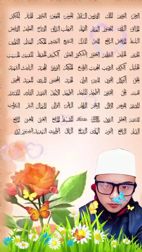 #Asma'ul Husna Paling Menyentuh, Ar-Rahman, Ar-Rahim, Al-Malik, Al-Quddus, As-Salam, Al-Muʾmin, Al-Muhaymin, Al-Aziz, Al-Jabbar, Al-Mutakabbir, Al-Khaliq, Al-Bari', Al-Musawwir, Al-Ghaffar, Al-Qahhar, Al-Wahhab, Ar-Razzaq, Al-Fattah, Al-ʿAlim, Al-Qabid, Al-Basit, Al-Khafid, Ar-Rafiʿ, Al-Muʿizz, Al-Muzill, As-Samiʿ, Al-Hakam, Al-ʿAdl, Al-Latif, Al-Khabir, Al-Halim, Al-ʿAzim, Al-Ghafur, Asy-Syakur, Al-ʿAlī, Al-Kabir, Al-Hafiz, Al-Muqit, Al-Hasib, Al-Jalil, Al-Karim, Ar-Raqib, Al-Mujib, Al-Wasiʿ,