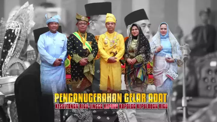 Dalam balutan busana adat Melayu yang megah, Kapolda Kepulauan Riau Irjen. Pol. Drs. Yan Fitri Halimansyah, M.H., menerima penganugerahan gelar adat Kesultanan Riau-Lingga pada acara Zuriat dan Kerabat Kesultanan Riau-Lingga yang dilaksanakan di Kabupaten Lingga. Gelar kehormatan Dato Perdana Satya Buana diberikan langsung oleh Yang Mulia Seri Paduka Baginda Sultan Hendra Syafri Riayat Syah Ibni Tengku Husein Saleh. Sabtu (13/7/2024). Gelar yang diterima oleh Kapolda Kepri Irjen. Pol. Drs. Yan