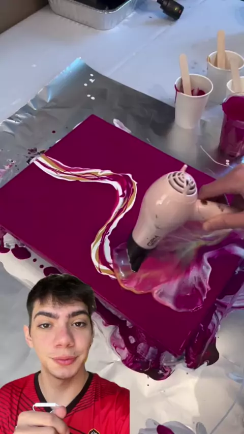 Secador de cabelo como pincel? Sim! 🤯 Use o ar para empurrar a tinta e criar artes únicas e abstratas. Testa em casa ou faz com as crianças – diversão garantida! 🎉 Compartilha e segue pra mais! . . . #PinturaAbstrata #SecadorComoPincel #ArtesCriativas #AtividadesInfantis #DIYArte