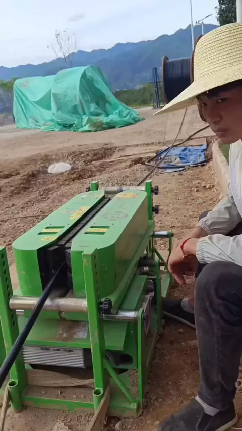 The machine works, the workers watch it, perfect match, and work is not tiring #cablepulling #cablelaying #cablemachine #cableconveyor #CableConveyorMachine