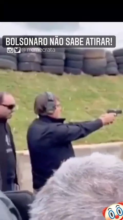 Bolsonaro tentando atirar com a arma travada. Carluxo se aproxima e tenta ajudá-lo, sem sucesso. O instrutor, então, intervém e tenta tirar a arma das mãos dele,q se irrita. É impressionante como Bolsonaro ñ sabe fazer NADA corretamente, até mesmo no q ele diz ter especialidade