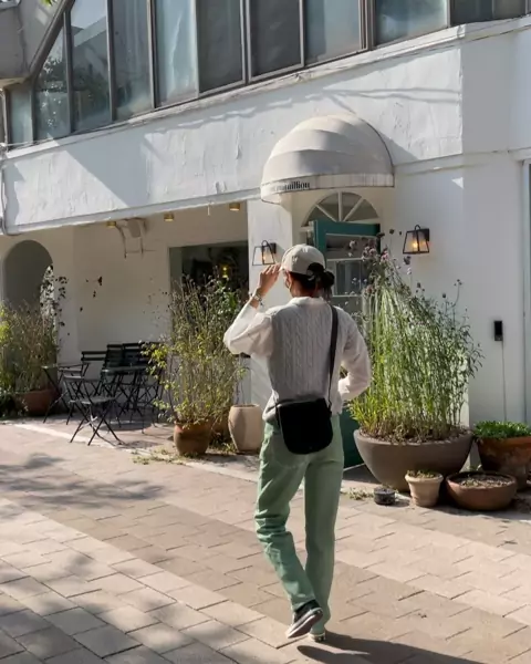 .초록이바지 내 픽🤟🏻🤟🏻초록이는 그냥 다 좋지💚.💚바지 예쁘쥬???? 이것도 기장 굿굿✌️..상의 - 폴로 니트베스트 👚하의 - 인스턴트펑크 👖가방 - 드메리엘 👜모자 - 마랑 🧢..#휴드셋업은#디엠이제#힘들어유#너무많오😹😹😹😹😹