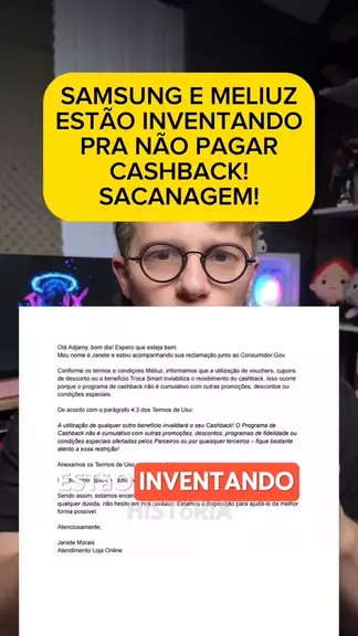 MELIUZ E SAMSUNG INVENTANDO PARA NÃO PAGAR CASHBACK? Várias pessoas receberam resposta de quem o cashback 20% não poderia ser usado junto com troca smart… O que é o contrário do que estava escrito no site da meliuz, da Samsung e o que foi dito na live da empresa! #samsung #meliuz #cashback #promoção #samsunggalaxy