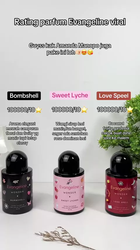 Wanginya enak semua,tahan lama lagi😍🫶🏻pantesan kak Amanda Manopo secinta itu sama parfum ini wajib coba sih kalian🫵🏻😍😘#evangeline #evangelineparfum #parfum #parfumtahanlama #parfumviral