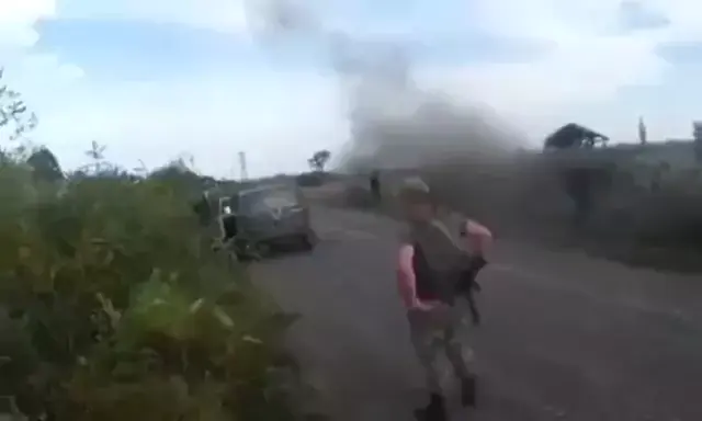 rusia yang melarikan diri dari serangan Angkatan Bersenjata ukraina, melompat ke pengangkut personel lapis baja. #berita #Rusia vs #Ukraina #Ukraine #momen_2022