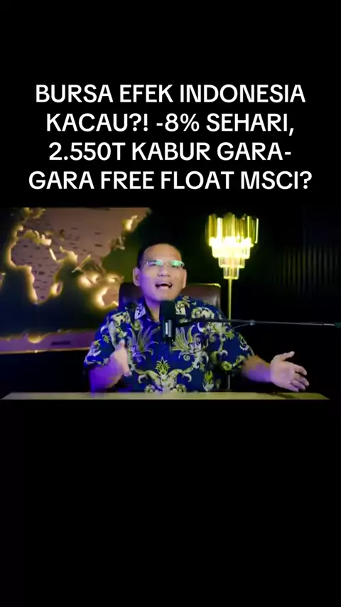 BURSA EFEK INDONESIA KACAU?! -8% SEHARI, 2.550T KABUR GARA-GARA FREE FLOAT MSCI? Bursa Efek Indonesia kembali diguncang penurunan tajam hingga lebih dari 8% dalam satu hari perdagangan yang membuat pasar saham memerah dan kepanikan terjadi di kalangan trader maupun investor ritel. Dalam kondisi ini, nilai kapitalisasi pasar dikabarkan menyusut hingga sekitar Rp2.550 triliun yang seolah-olah “menguap” dari lantai bursa dan menimbulkan pertanyaan besar tentang apa yang sebenarnya terjadi di balik...