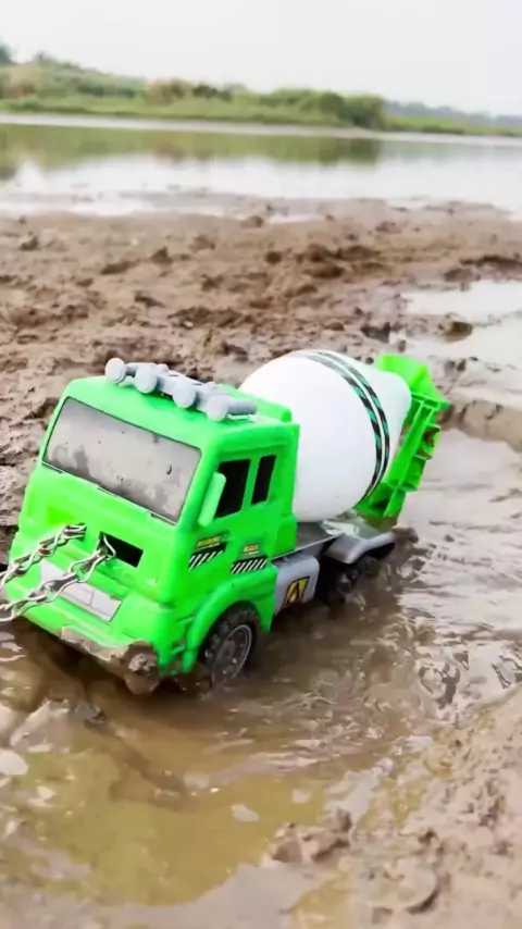 O desafio de um pequeno carro de brinquedo atravessando o poço de lama