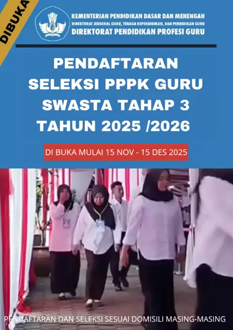 Seleksi pengangkatan guru swasta menjadi Pegawai Pemerintah dengan Perjanjian Kerja (PPPK) telah dibuka. Berikut beberapa informasi penting tentang seleksi ini Pendaftaran: Pendaftaran seleksi PPPK tahap 3 untuk guru swasta tahun 2025 Persyaratan: Guru swasta yang ingin mengikuti seleksi PPPK harus memenuhi beberapa persyaratan, antara lain: Sertifikasi Guru: Memiliki sertifikat pendidik yang sah dan diakui oleh pemerintah. Pengalaman Mengajar: Memiliki pengalaman mengajar yang relevan. Kualifi...