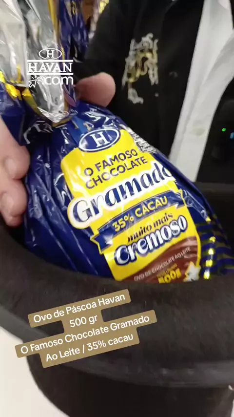 O Famoso Chocolate de Gramado Ovo de Páscoa Havan 500gr Ao Leite 35% Cacau . Muito maís Cremoso . Apenas 69,99 !!!! Havan - Onde a Mágica Acontece 💚🎩🪄 Vemmmm pra @Havan Oficial(O150001570652383)