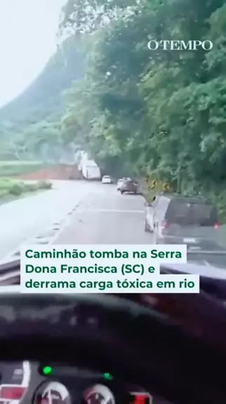ACIDENTE - Um caminhão carregado com ácido sulfônico tombou, pegou fogo e bloqueou a SC-418, no km 15, na Serra Dona Francisca, em Joinville (SC) na manhã desta segunda-feira (29). O acidente levou ao derramamento do produto químico, que chegou a atingir um rio na região. Vídeos registram uma espuma branca sobre a correnteza. Por causa disso, a Prefeitura de Joinville decretou emergência. #acidente #brasil #caminhao #fyp #foryou