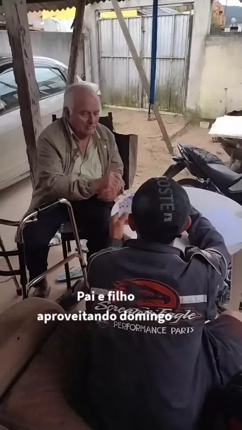 meu sogro firme forte, jogando um baralho com seu filho q e meu marido