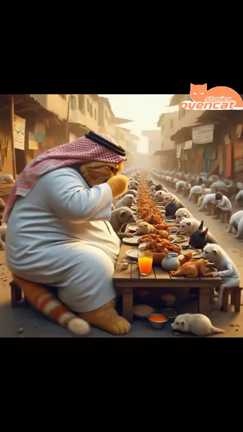 Chubby Orange Cat Cooks Iftar Meals for Poor Animals in ramadan | Day 18 ramadan #cat #Ramadan #charity Tob Tobi Tob Tob Tobi Tob The chubby orange cat, wearing a white robe and Saudi ghutrah, prepares a massive iftar meal in a large pot in the middle of a poor town. With enthusiasm, he stirs the delicious food while being helped by the needy animals. As the call to prayer echoes, they sit together, sharing the meal with gratitude. Ramadan is a month of giving, and even a small act of kindness... More