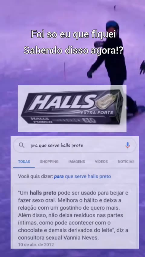 Só esqueceram de dizer que ao fazer sexo oral com Halls, causa infecção urinária,caiam fora existem outras maneiras de sentir prazer.#FicaaDica👍👍👍