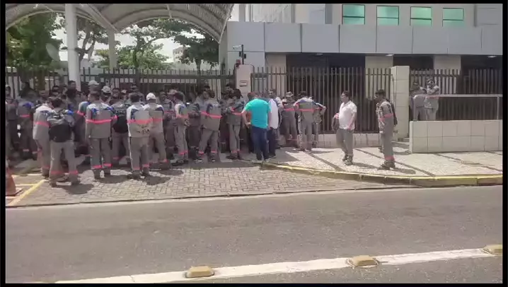 eletristas da terceirizada Enel fazendo greve na frente do prédio da Enel... #salarioatrasado