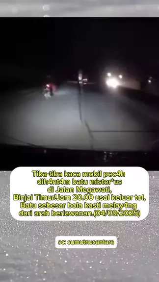 Tiba-tiba kaca mobil pecah dihantam batu misterius di Jalan Megawati, Binjai Timur! Jam 20.00 usai keluar tol, batu sebesar bola kasti melayang dari arah berlawanan. #lalulintas #berita #lakalantas #batu #jalan
