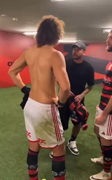 NEYMAR NO VESTIÁRIO DO MENGÃO! Após acompanhar a vitória do Flamengo sobre o Grêmio, Neymar foi para o vestiário rubro-negro e resenhou com David Luiz, com quem esteve junto na Seleção Brasileira, e Léo Pereira. O registro foi compartilhado no storie do vice-presidente de futebol do Flamengo, @marcosbrazoficial Por @brunodoubs 📸 Reprodução/Marcos Braz