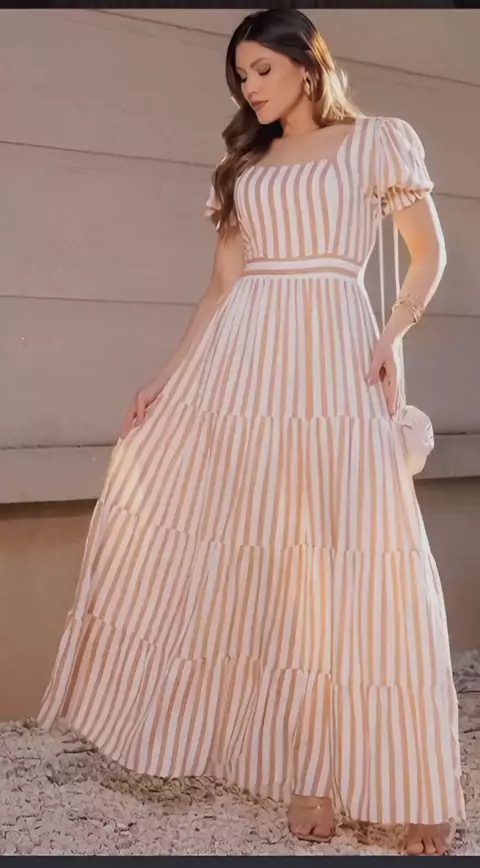 vestido longo feminino listrado #vestidos #roupasfemininas #dicademoda #vestidolongo #publicidade