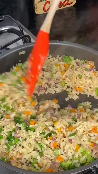 Azeite 2 dentes de alho 1 xícara de arroz integral 3 xícaras e meia de água Sal a gosto Manteiga para refogar os legumes 1/2 cebola picada 1/2 cenoura picada A mesma proporção de vagem e de brócolis 1/2 xícara de repolho roxo Salsinha e cebolinha a gosto #receitas #receita
