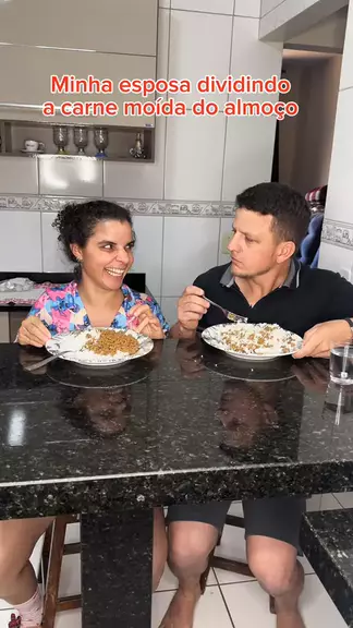 Minha esposa dividindo a carne moída do almoço