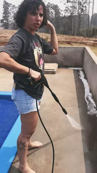 A Cris não para de trabalhar na chácara.