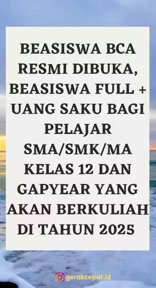 ‼️ BEASISWA KULIAH FULL SAMPAI LULUS ‼️ hayoo siapa nihh yang lagi cari beasiswa kuliah full bagi kelas 12 SMA/sederajat dan gapyear yang ingin berkuliah di tahun 2025?☝️ cuss buruan daftar beasiswa BCA ini ya🙌 #fyp #xyzbca #emak #infobeasiswa #undangandigital