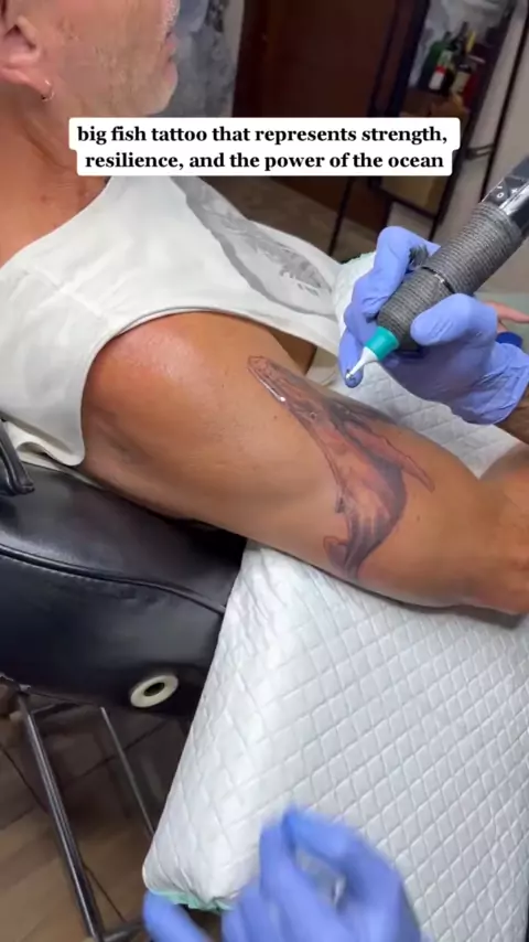 Excited to show off new big fish tattoo that represents strength, resilience, and the power of the ocean. It's a reminder to keep swimming forward and never give up. . .#bigfishtattoo#tattooart#inkedup#strength#resilience#oceanpower#tatouagebali#tattoosanur More