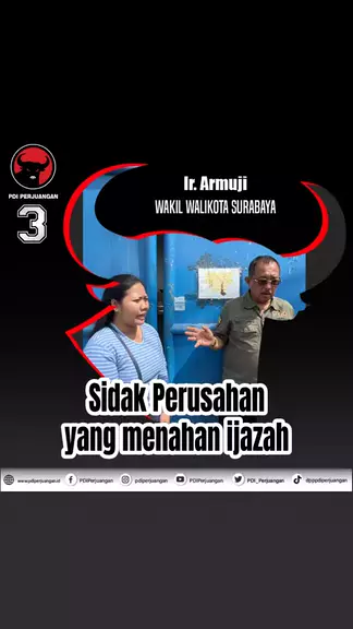 Selamat Pagi. Armuji Wakil Wali Kota Surabaya, Menindak lanjut laporan warga terkait adanya penahanan ijasah oleh perusahaan di Margomulyo. Ketika disana, pintu tidak dibukakan, dan pemilik perusahaan tidak mau berdialog dengan baik. Bahkan Saya dituduh penipu. Bahkan, Disnaker pun juga tidak pernah diterima dengan baik. Kasus ini akan terus dikawal hingga Saya bisa bertemu dengan pemilik perusahaan. Selengkapnya tonton di youtube: Armuji #PDIPerjuangan #MenangkanRakyat #SatyamEvaJayate