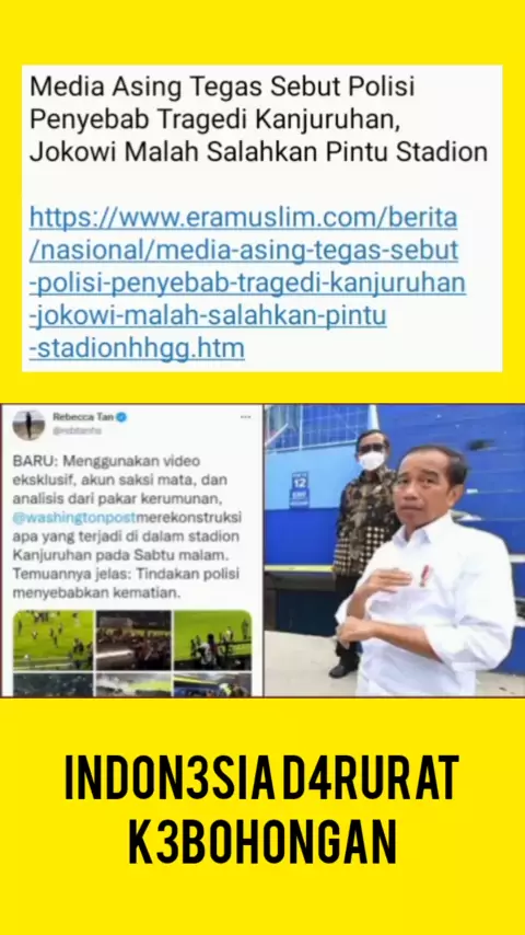 Media Asing Tegas Sebut Polisi Penyebab Tragedi Kanjuruhan, Jokowi Malah Salahkan Pintu Stadion https://www.eramuslim.com/berita/nasional/media-asing-tegas-sebut-polisi-penyebab-tragedi-kanjuruhan-jokowi-malah-salahkan-pintu-stadionhhgg.htm