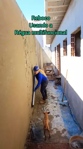 Reboco, mulher faz acabei de Reboco com régua multifuncional. ferramenta que todo pedreiro precisa de ter