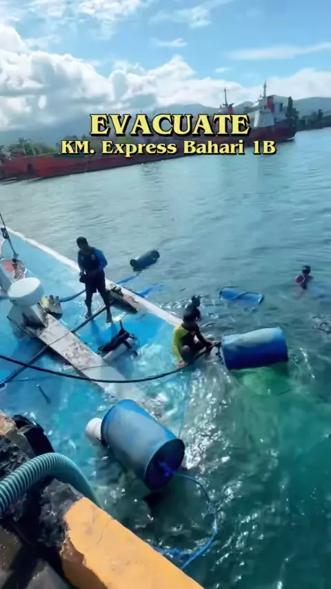 Proses evakuasi KM. Express Bahari 1B dimulai sejak tadi jam 11.30 WIT#゚viral#pppppppppppppppppppppp#p#p#dong#pelahuhantulehu#kapalcepat