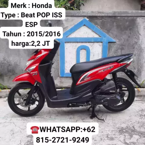 بِسْــــــــــــــــــمِ اللهِ الرَّحْمَنِ الرَّحِي Merk : Honda Type : Beat POP ISS ESP Tahun : 2015/2016 Cc : 110 Tranmisi : A/T (Matic) Bahan bakar : Bensin ○ Dokumen - Surat2 komplit BPKB,STNK,FAKTUR - Asli AB - Pajak Hidup ○ Kondisi - Terawat bersih dan rapi - Body Utuh Orisinil - Indikator normal - Kelistrikan normal - Spedo normal - Mesin Terawat, tarikan enteng - Starter juga oke - Ban2 masih tebal - Oli mesin baru - Tinggal Pakai harga:2,200.000 JT Hub/WA :.+62 815-2721-9249