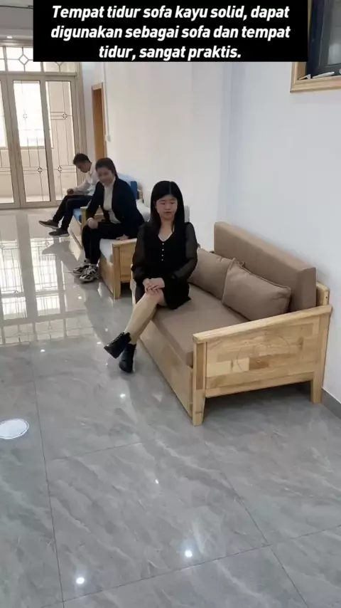 Tempat tidur sofa kayu solid, dapat digunakan sebagai sofa dan tempat tidur, sangat praktis.
