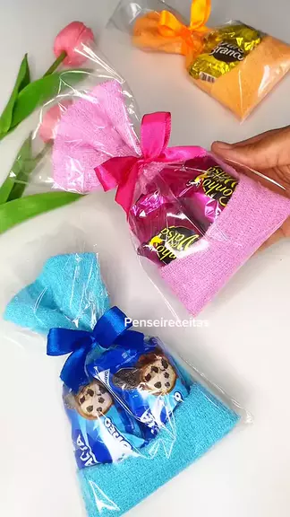 Ideia para festas | lembrancinha com toalhinha e bombom #lembrancinhas #aniversario #bombom #toalhinhapersonalizada