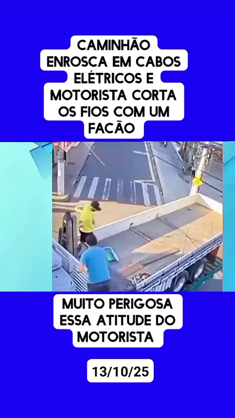 #noticias # caminhão enrosca em cabos elétricos e motorista corta os fios com um facão # More