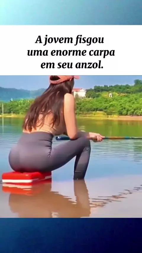 A jovem fisgou uma enorme carpa em seu anzol. #pescaria #viraliza #pescaesportiva