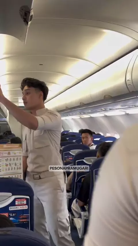 Pramugara superairjet sedang memberi arahan ke penumpang pesawat!! #superairjet #pramugara