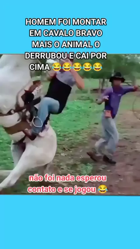 HOMEM FOI MONTAR EM CAVALO BRAVO MAIS O ANIMAL O DERRUBOU E CAI POR CIMA 😂😂😂😂😂 #kwaipets #viral #oficial #animais #festakwai