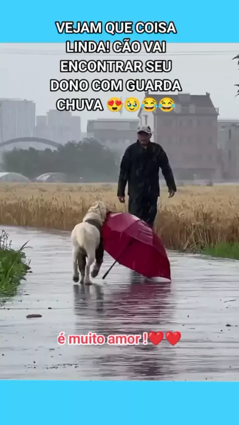 VEJAM QUE COISA LINDA! CÃO VAI ENCONTRAR SEU DONO COM GUARDA CHUVA 😍🥹😂😂 #kwaipets #DesafioDeNívelDaFamília #ofertablackfriday #conquistar200k #oitube