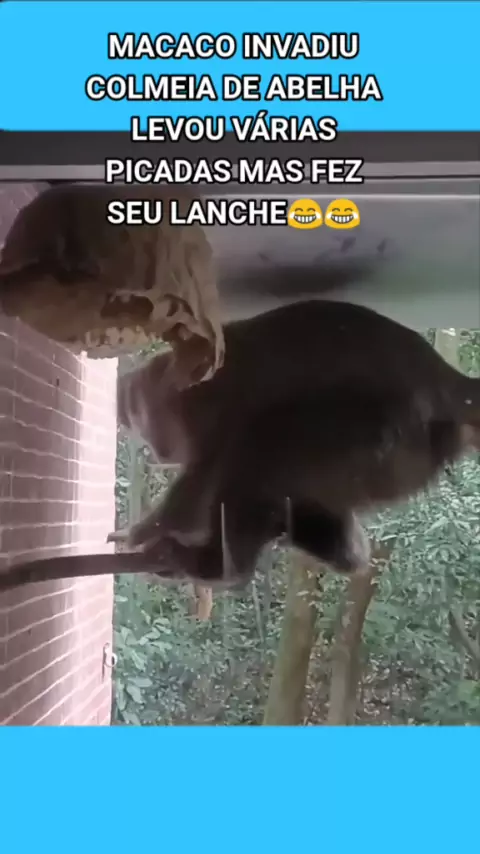 MACACO INVADIU COLMEIA DE ABELHA LEVOU VÁRIAS PICADAS MAS FEZ SEU LANCHE😂😂 #kwaipets #topZ #viral #engraçado #rodeio