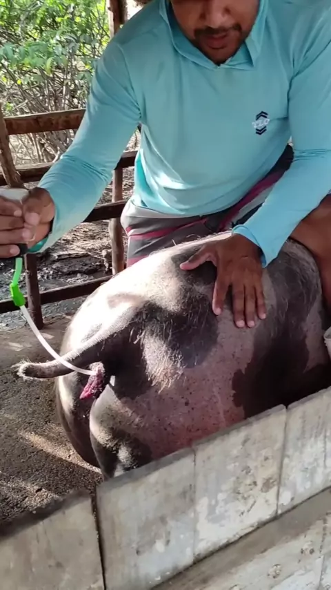 Inseminação numa Matriz PIETRAN PO, com o sêmen de um Reprodutor Black, Adquirido lá no nosso amigo ítalo da Barbosa Suínos 🐖 #suínos #pfsuinos #suinocultura