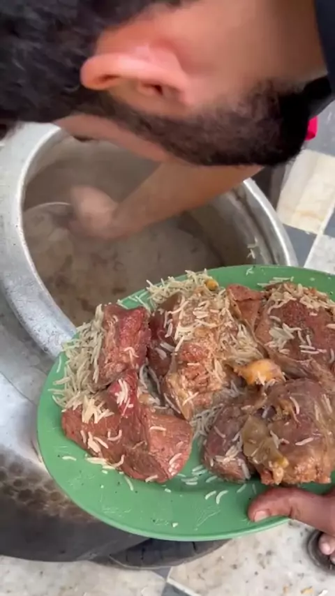 # Pakistan # Sepotong besar daging sapi direbus dengan nasi. Satu porsi kurang dari 10 yuan