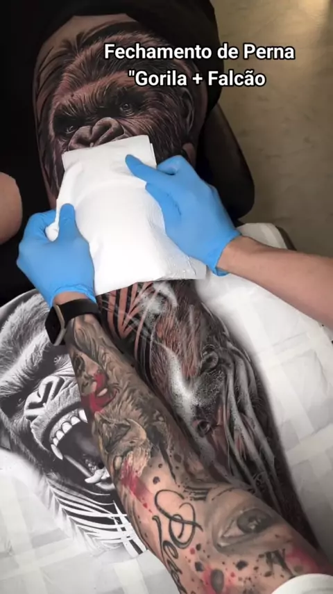 Fechamento de perna Gorila + Falcão #tatuagem #tattoo #tattoart #foyou #viral
