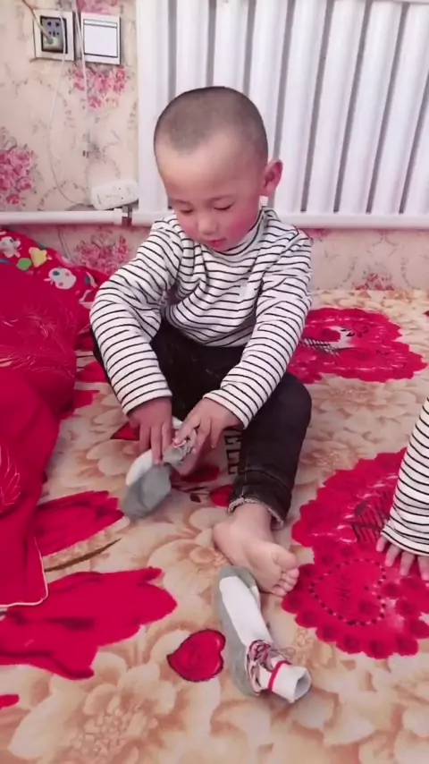 Saya tidak tahu apakah kaki tidak cocok dengan kaus kaki atau kaus kaki kecil🤣 # Keluarga memiliki anak kembar Mengbao # Kehidupan sehari-hari anak kembar # Rekam pertumbuhan bayi setiap hari