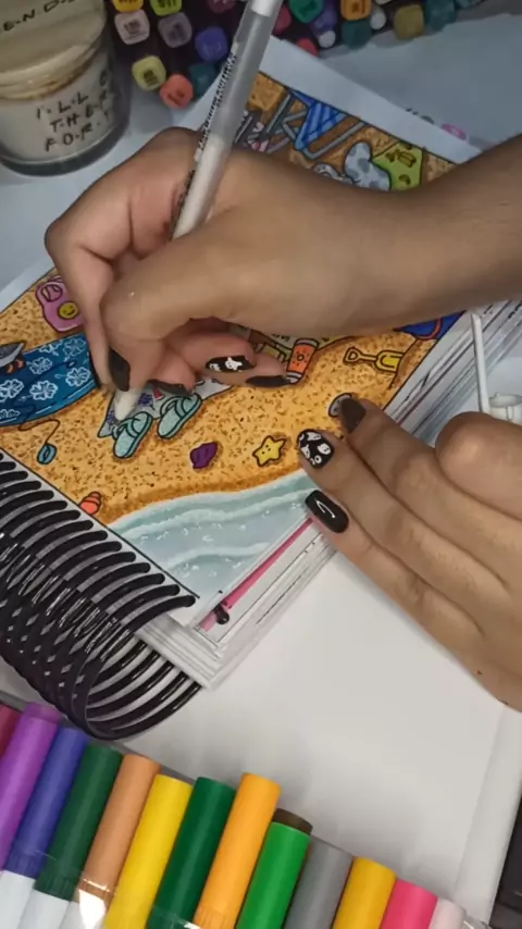 Mais um colorido @bobbiegoods, agora testando texturas de areia e mar ποΈπ #bobbiegoodscoloringbook #bobbiegoods #coloring #beach #praia