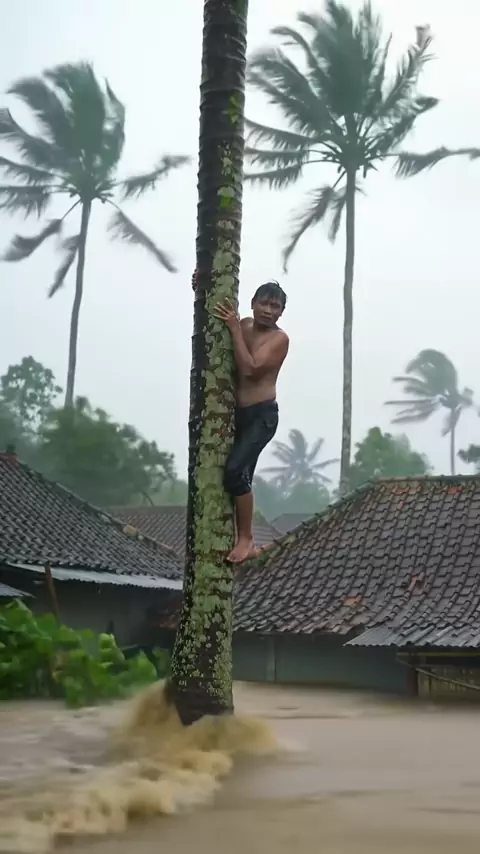 Terjebak di Pohon‼️😰 Arus Banjir Sangat Deras #banjir #waspadabencana #